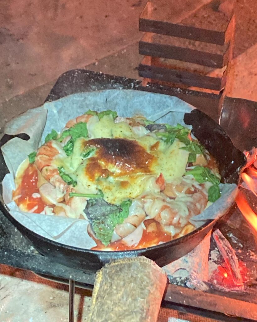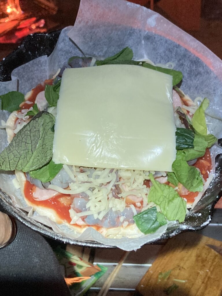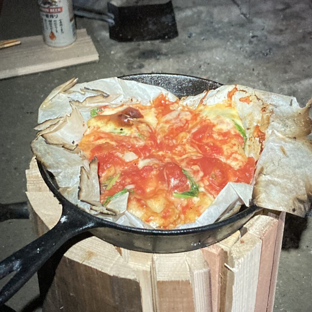 サウナ→ピザと楽しいキャンプをして仲間と焚き火を囲み酒を飲んでこの日は床につきましたzzz