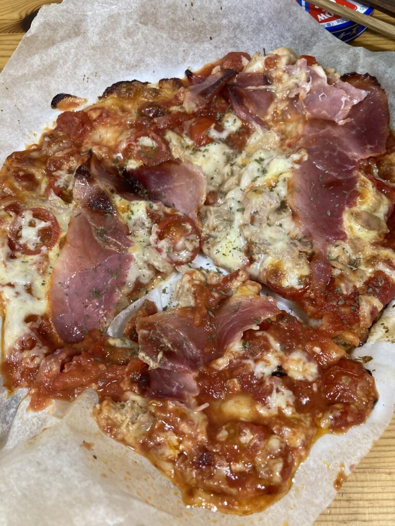 ちゃんとできたぽい…ピザと言ったらシンプルオブベストのマルゲリータを一作目は作ってみました!バジルが無かったのが残念